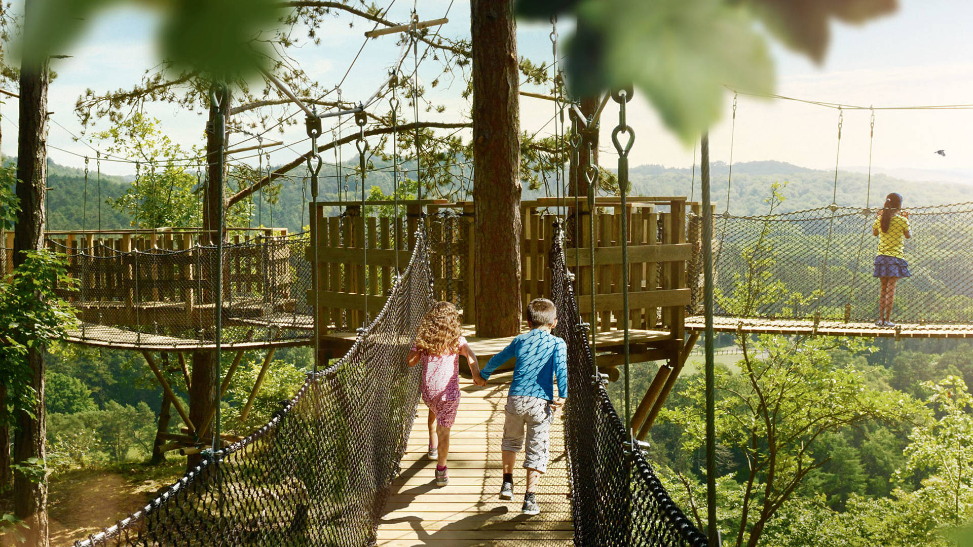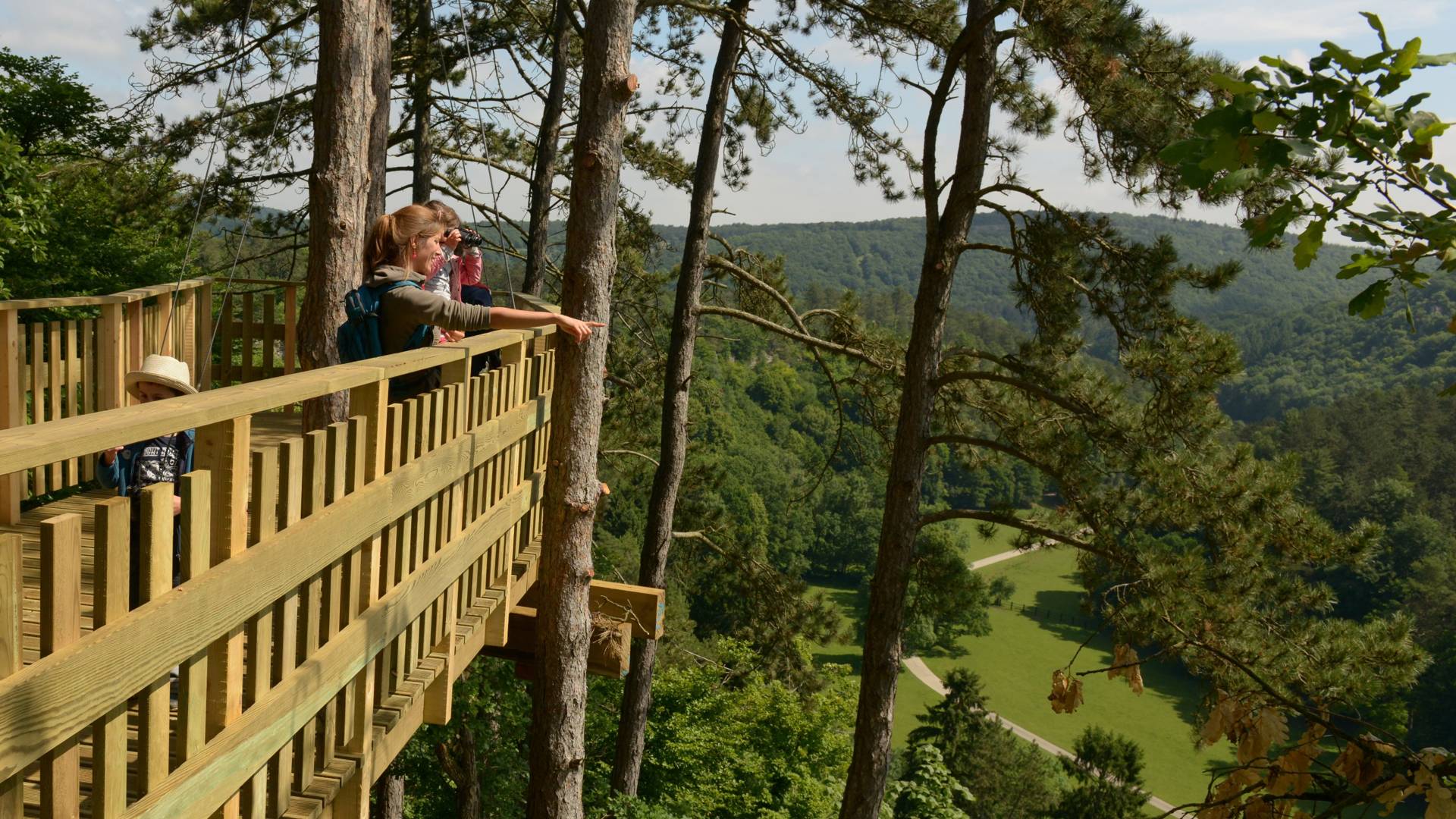 Bladerdakbrug: een spectaculair parcours van 200 meter lang en 5 meter hoog door de boomtoppen, met een prachtig uitzicht over de oude Lesse-vallei.