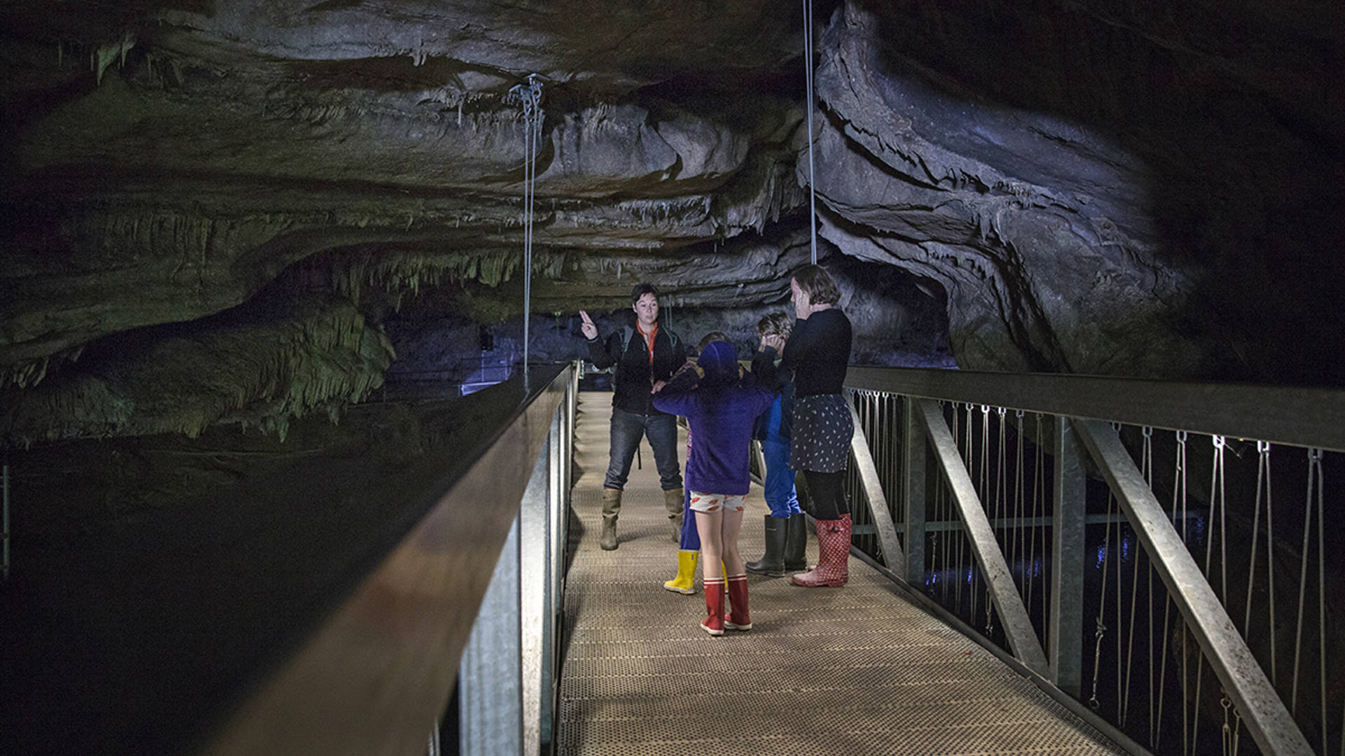 Speleo-parcours: een uitdagende alternatieve route door de obscure gangen van de grot, inclusief modderige rivierpassages en neergestorte stenen.
