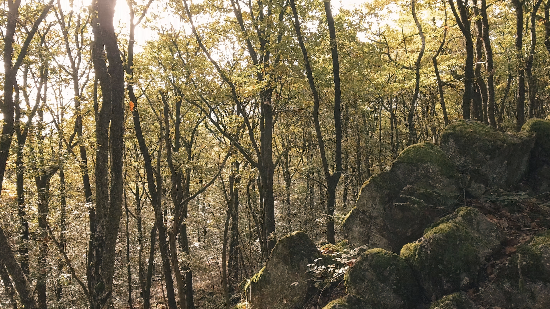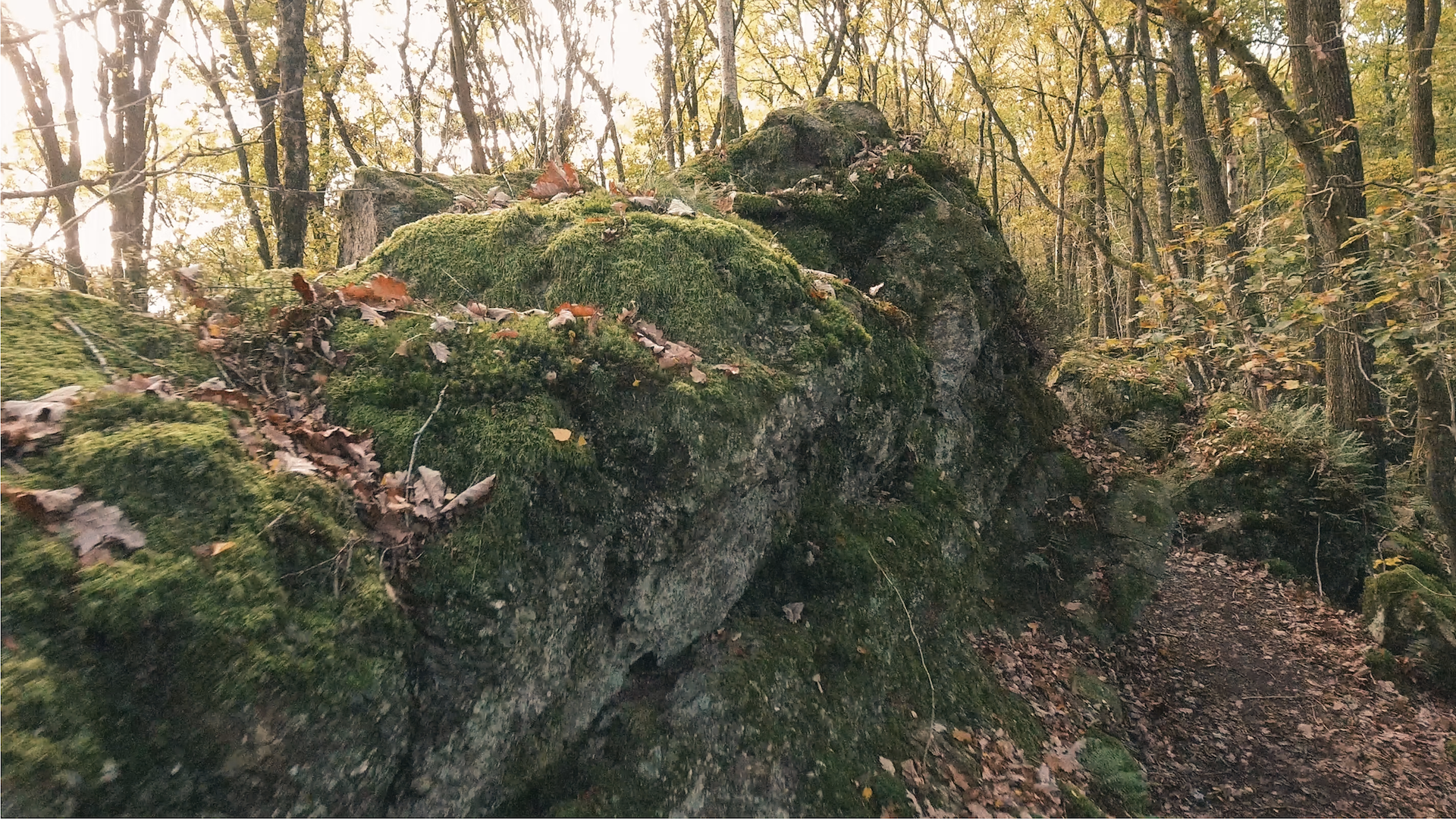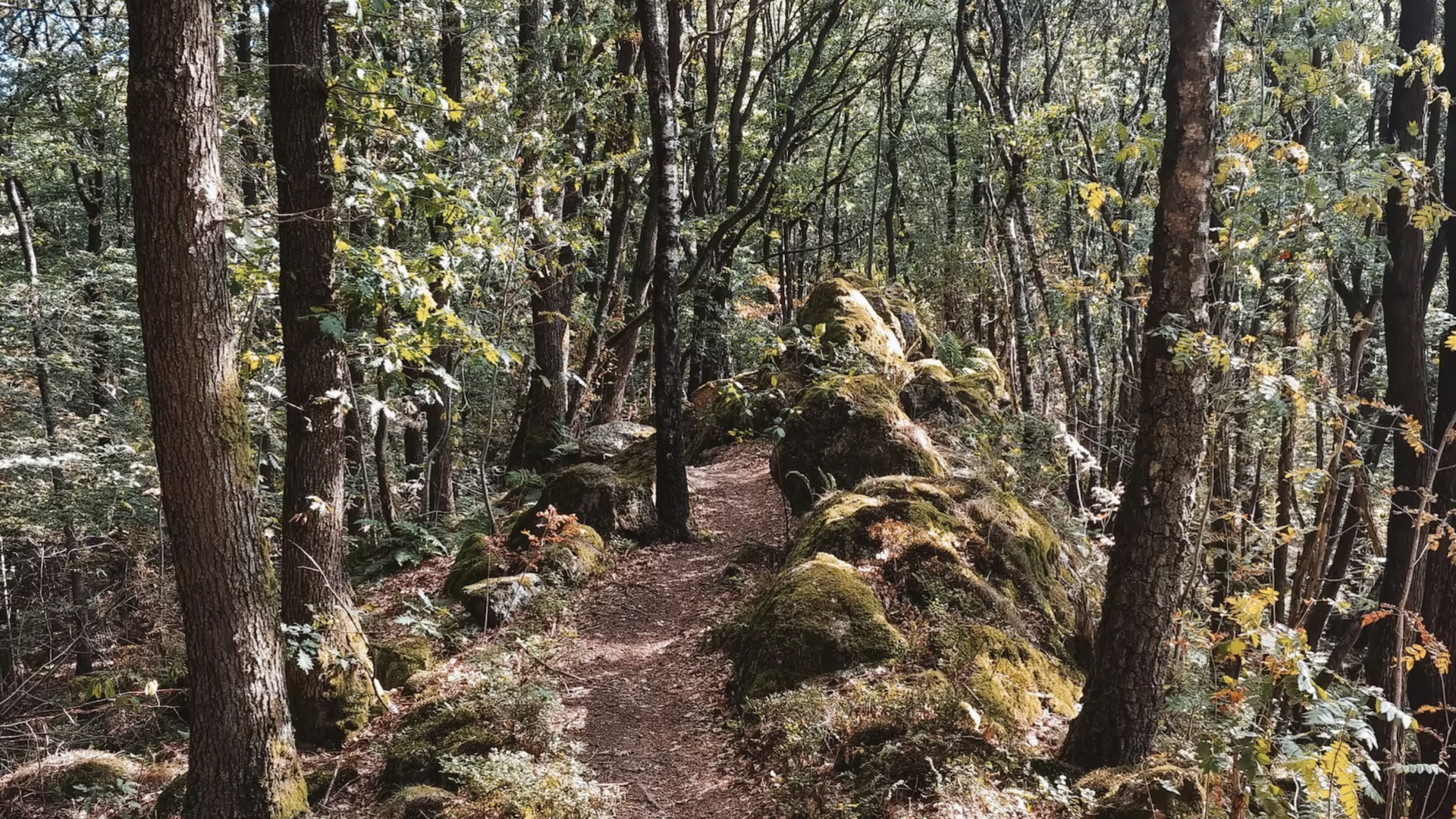 Wanneer je het pad naar het oosten volgt, bereik je de Kroon, een hoog punt van 380 meter. Onderweg veranderen de loofbossen langzaam in een smal, kronkelend pad. De rotsige punten die uit de grond steken, lijken op de rugschubben van een draak – een spectaculair gezicht! Het landschap voelt haast buitenaards: bemoste rotsen, diepe afgronden aan weerszijden en een sfeer die rechtstreeks uit Tolkiens wereld lijkt te komen. Een wandeling die je ademloos achterlaat.