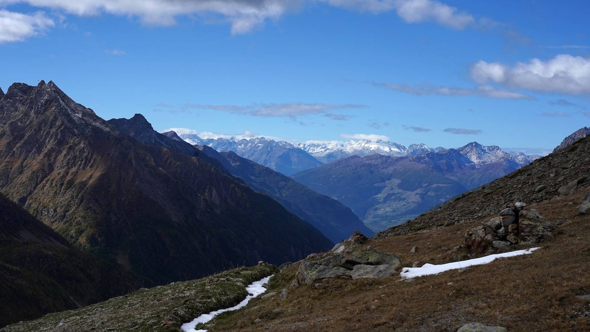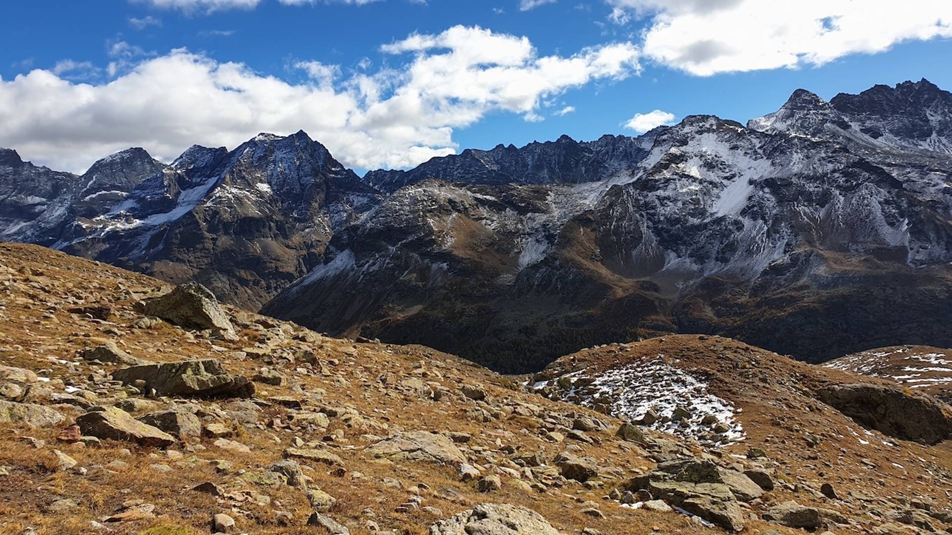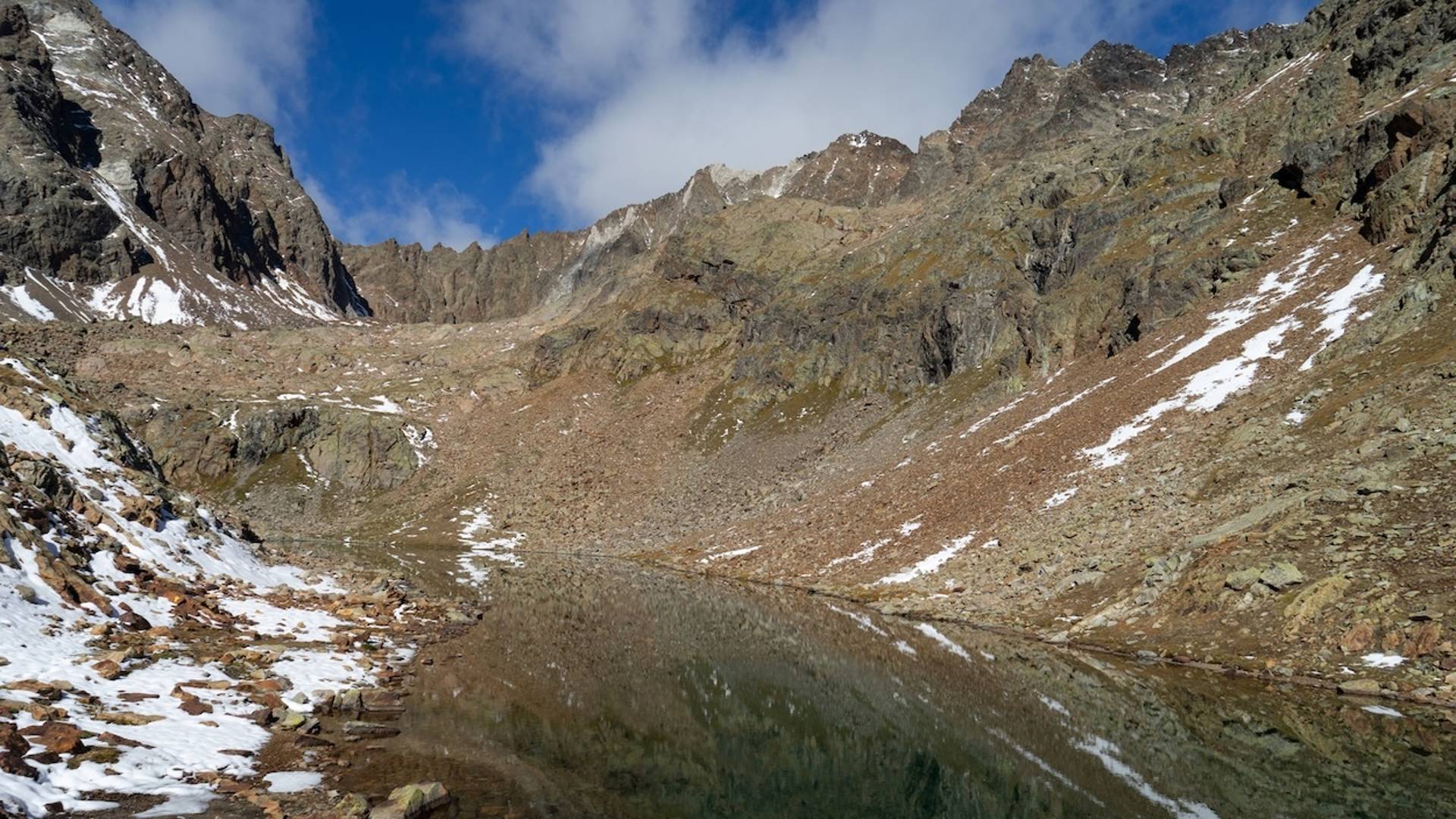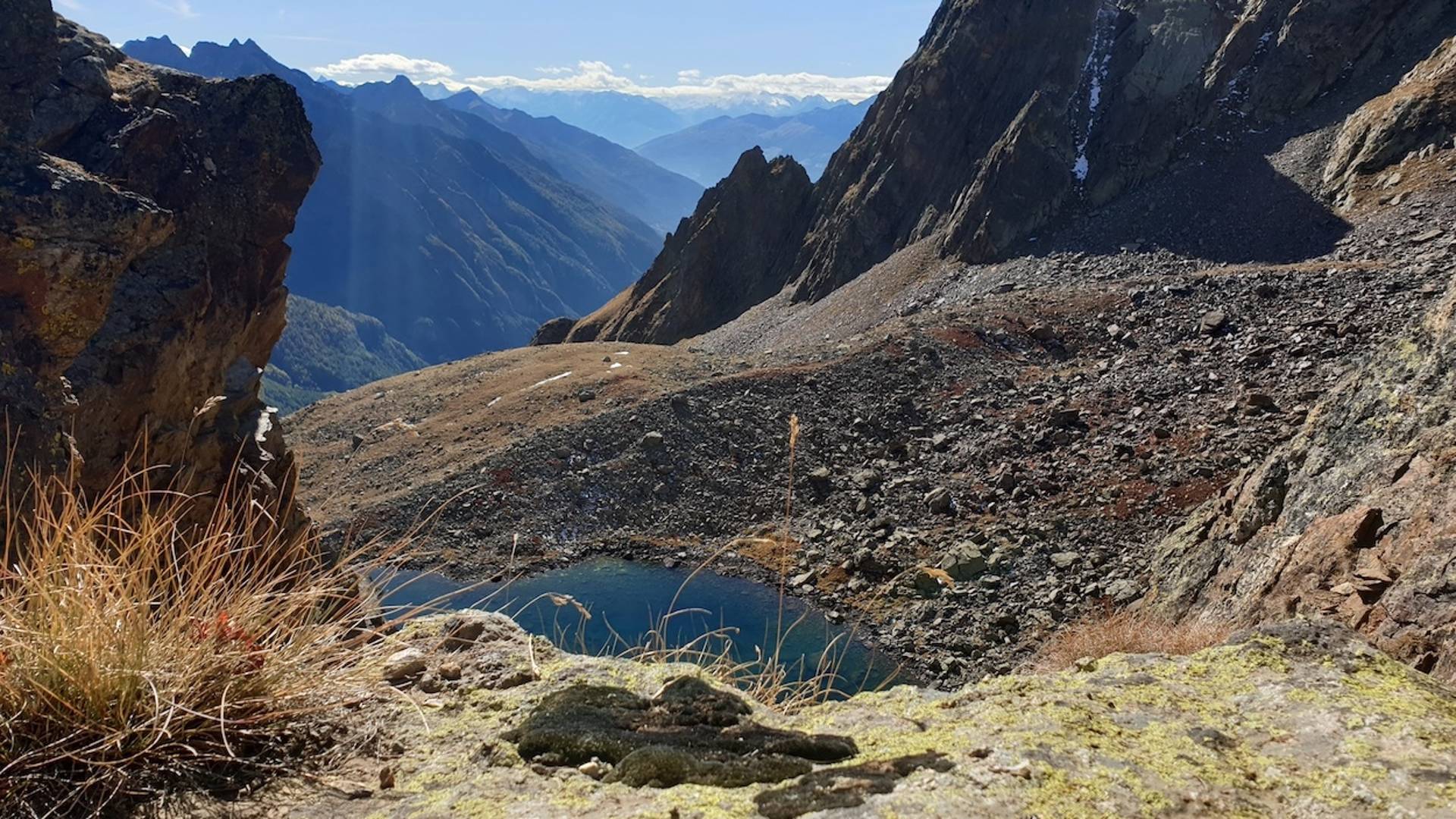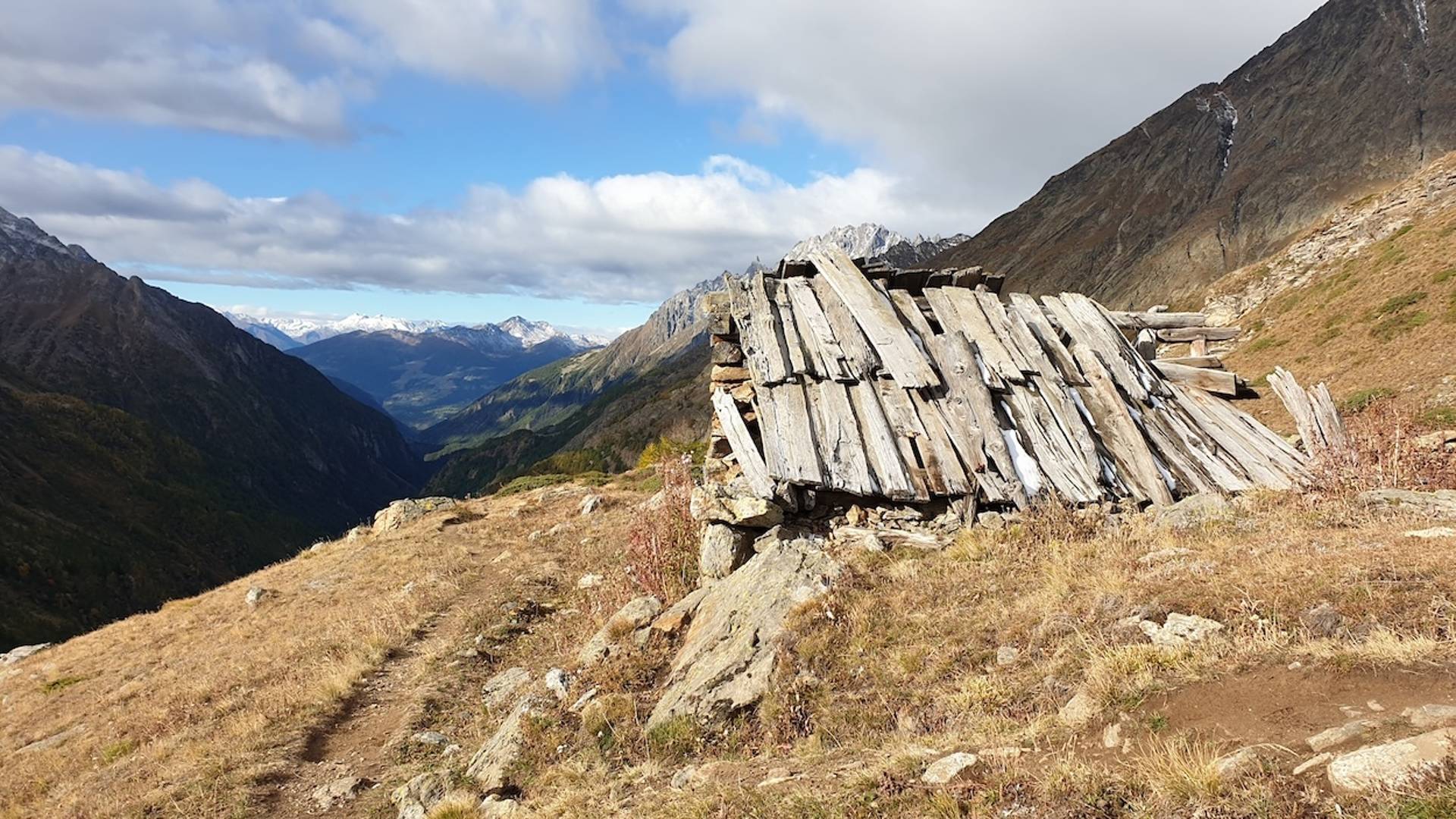 We deden deze hike op een stralende herfstdag, wanneer de goudgele lariksen fel afsteken tegen het aquamarijne water van de stuwdam beneden. De kleuren, het licht en de rust maken deze wandeling op zichzelf al bijzonder — maar het echte spektakel begint pas eenmaal onderweg.