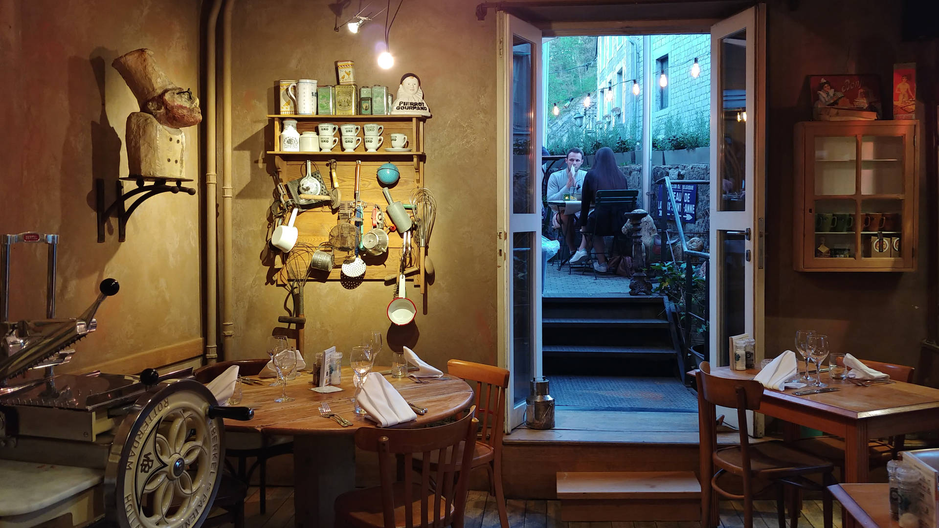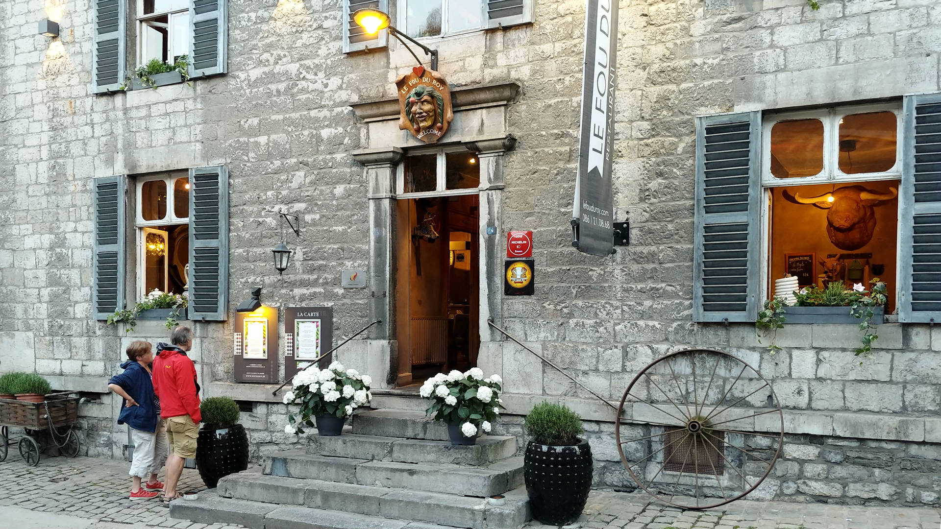 Le Fou du Roy is een van onze favoriete restaurants in Durbuy. Alleen al vanwege de bijzondere inrichting, een mix van antiek, curiosa en moderne kunst.