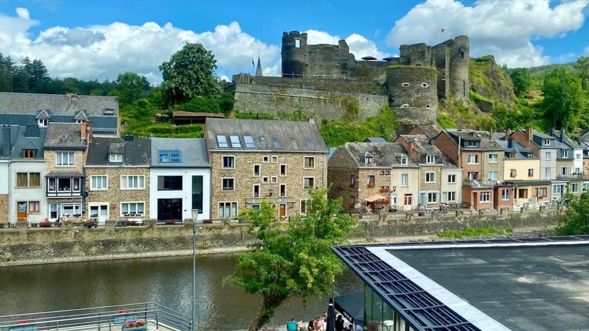 In het hart van La Roche-en-Ardenne, direct aan de oever van de Ourthe, vind je Le Quai Son. Aan de ene kant heb je uitzicht op het indrukwekkende feodale kasteel, aan de andere kant kijk je uit op de levendige Place du Bronze.