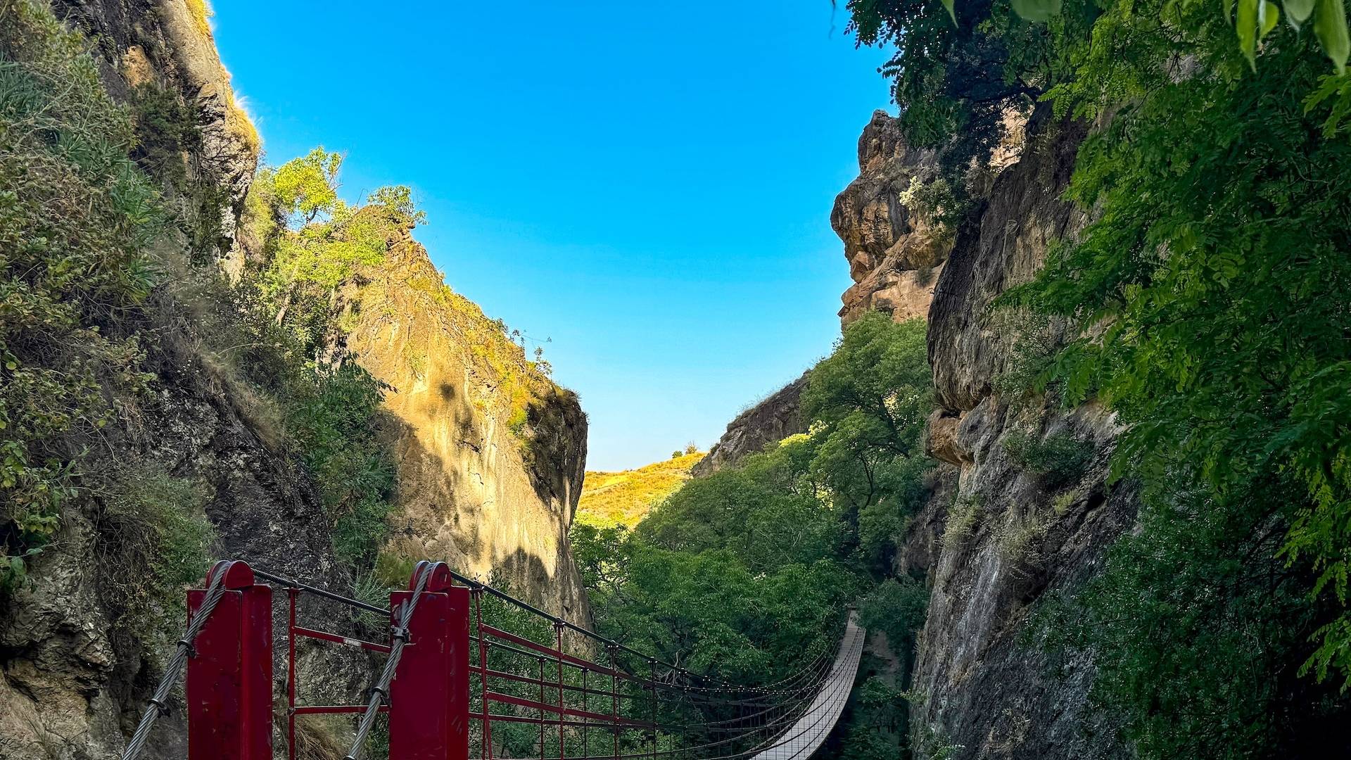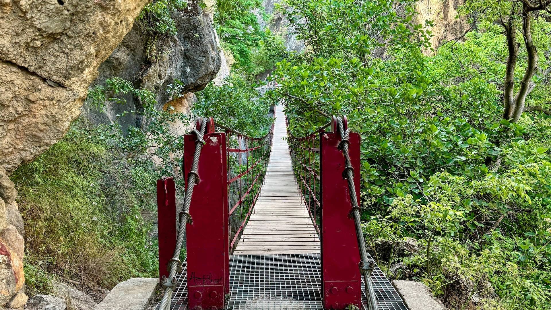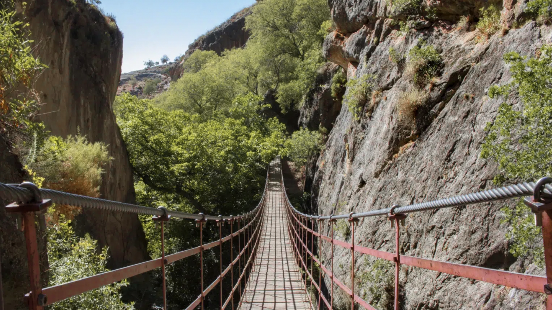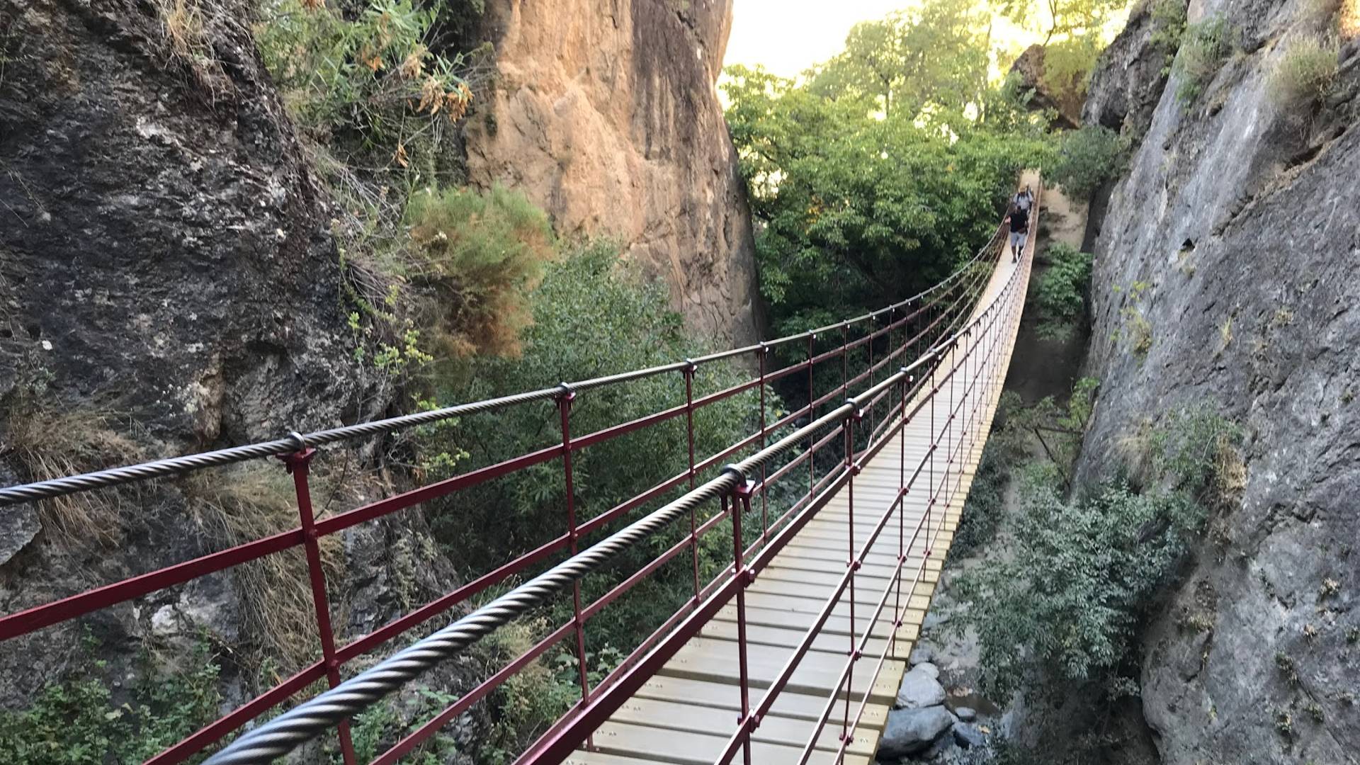 Het bekendste punt van Los Cahorros is de lange, wiebelende hangbrug die de twee kanten van de kloof met elkaar verbindt.