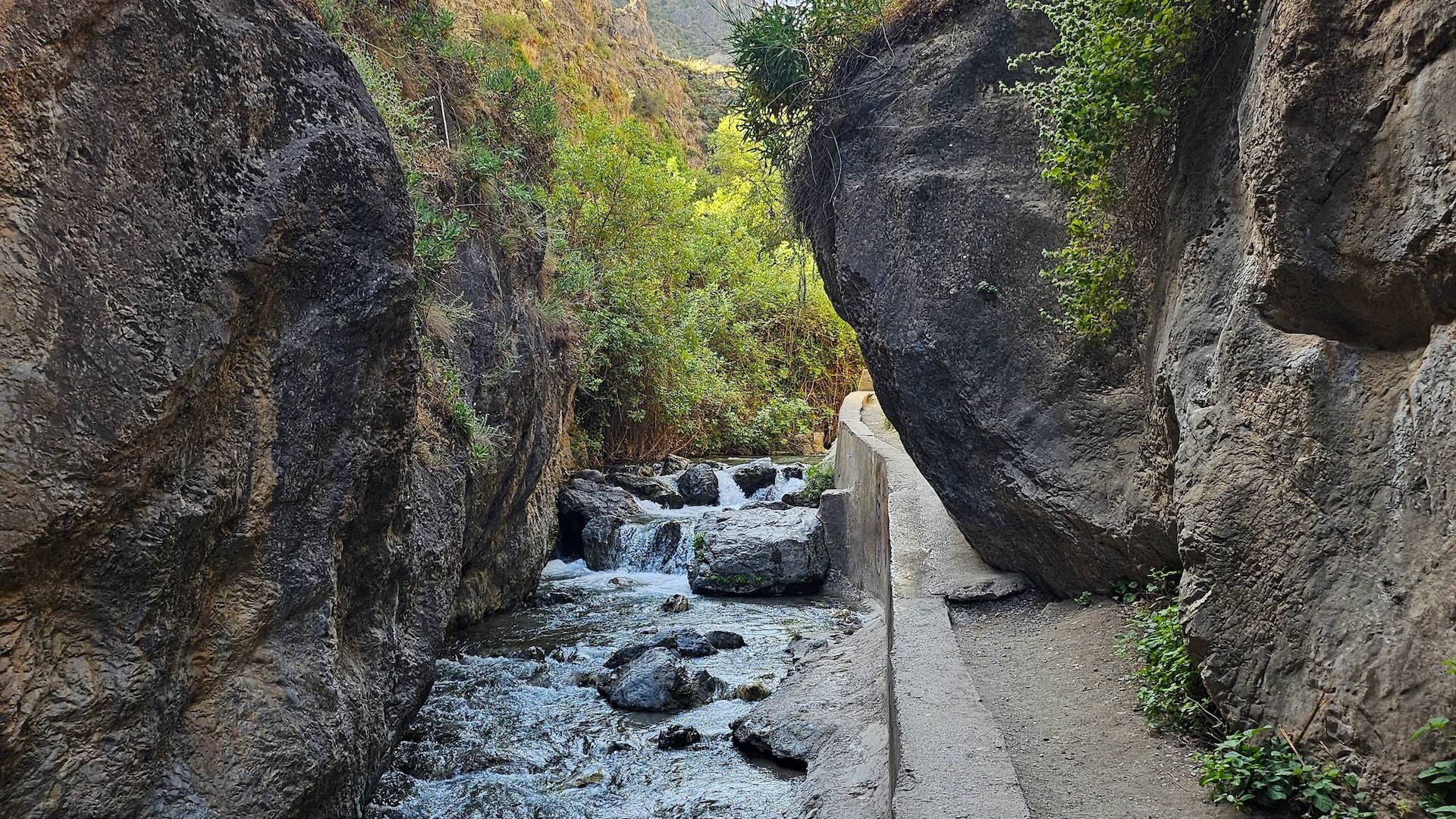 Deze kloof — uitgesleten door de Río Monachil — staat bekend om zijn smalle passages, hoge rotswanden, touwbruggen en een landschap dat bijna filmisch aanvoelt. Het is een wandeling vol avontuur, uitzichten en verrassingen.