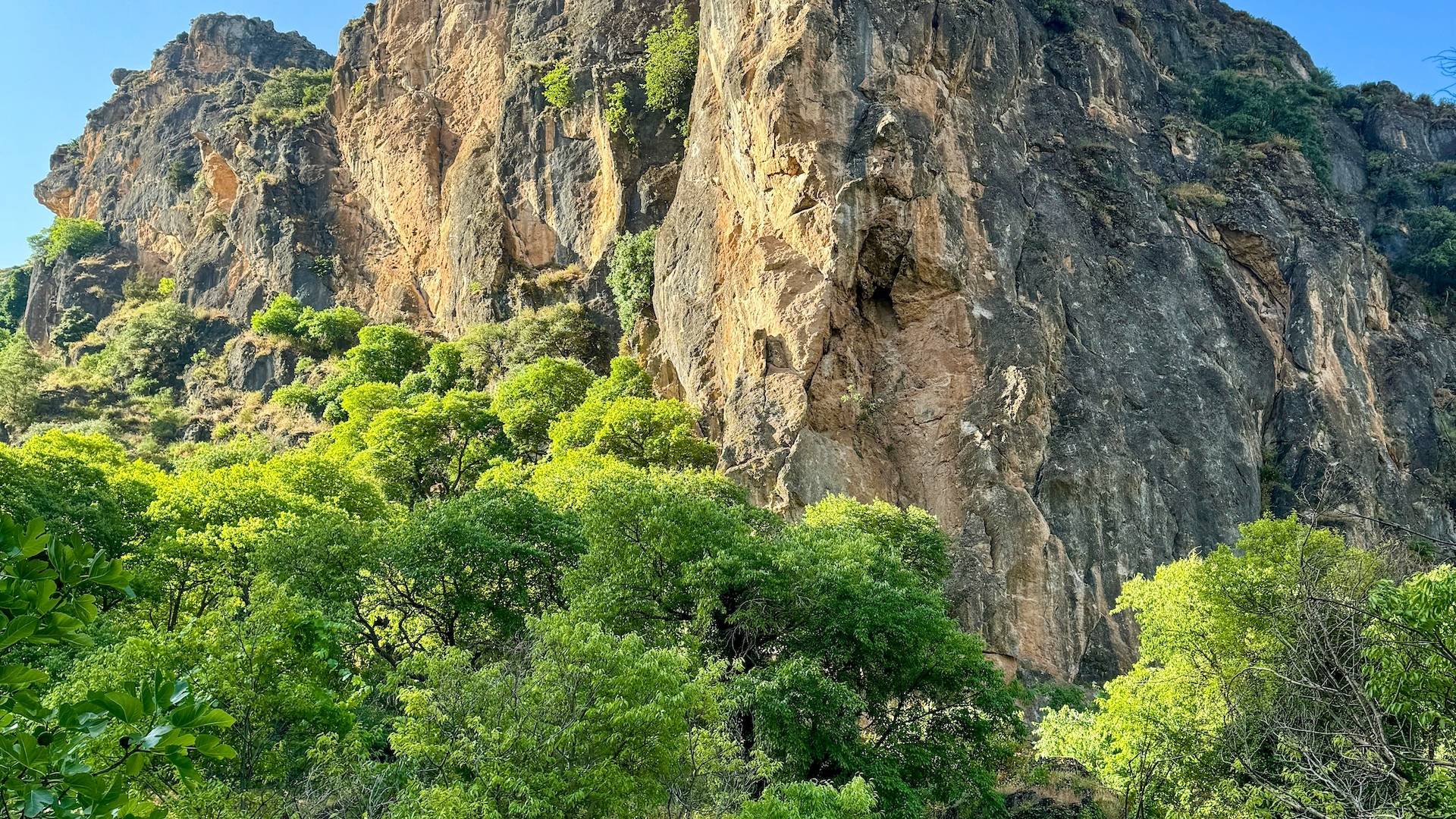 Het pad wisselt tussen schaduwrijke stukken langs het water en zonnige viewpoints over de vallei. Onderweg kom je kleine watervalletjes, grotten en groene oases tegen.