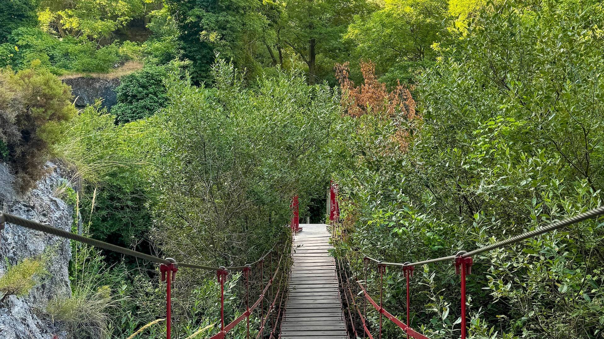 Na de hangbrug volg je het pad langs de rand van de kloof.