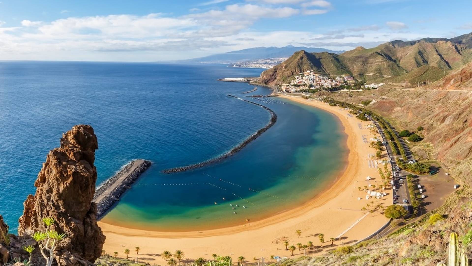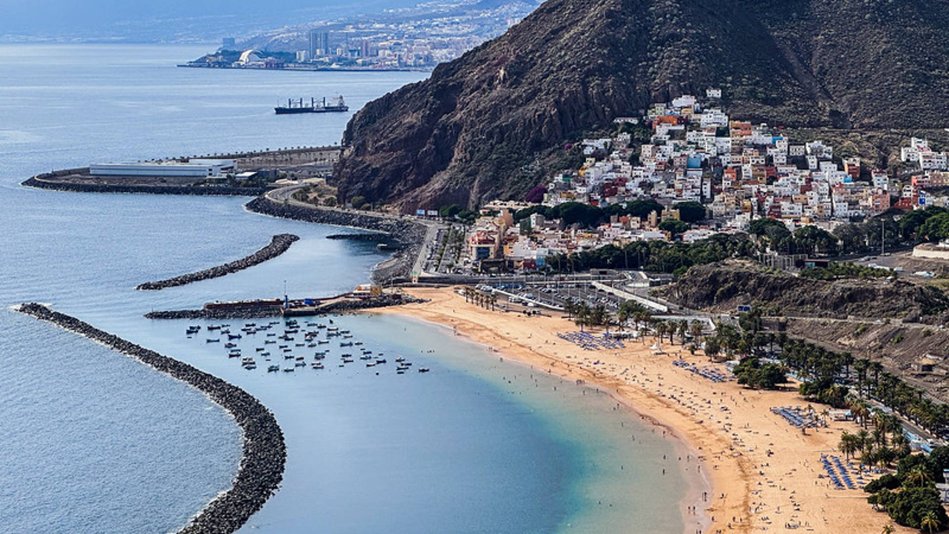 Op slechts 10–15 minuten van Santa Cruz ligt Playa de Las Teresitas: een tropisch ogend strand met goudgeel zand, turquoise water en palmbomen.
