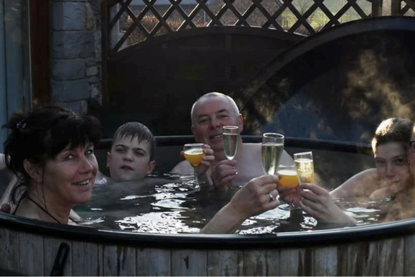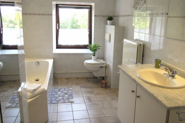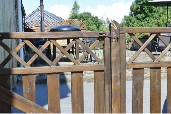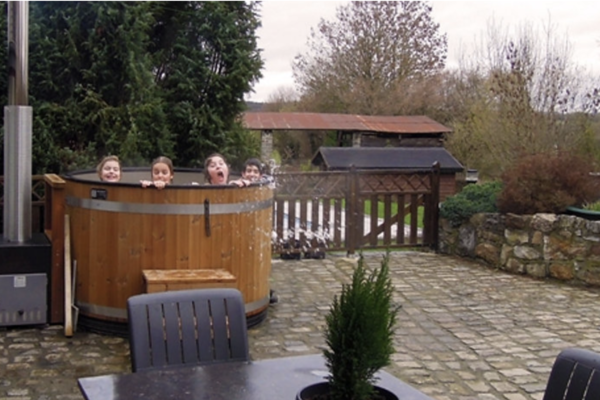 Hinter dem Haus erwartet Sie ein 450 m² großer, tiefer Garten mit einer großen Rasenfläche, auf der Kinder und Hunde frei spielen können. Die große, komplett abschließbare Terrasse mit Esstisch und Grill ist der Ort für laue Sommerabende. Für das ultimative Urlaubsfeeling steht hier der holzbefeuerte private Whirlpool für ein warmes Bad unter dem Sternenhimmel bereit. Das absolute Highlight ist jedoch der private beheizte Swimmingpool, in dem Sie von Frühling bis Herbst ein erfrischendes Bad in absoluter Privatsphäre genießen können.