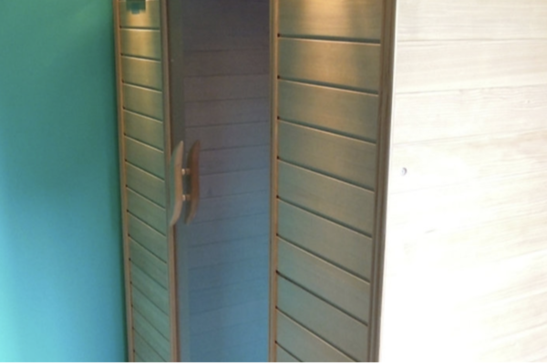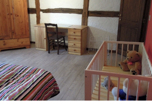 Über die Treppe gelangen Sie in den ersten Stock, wo Sie drei Schlafzimmer erwarten. Das größte Schlafzimmer ist mit einem geräumigen Doppelbett und einem Kinderbett ideal für Familien. Die beiden anderen Zimmer sind flexibel mit Einzelbetten ausgestattet. Auf dieser Etage befinden sich auch die Bäder und die Infrarotsauna mit Lichttherapie.