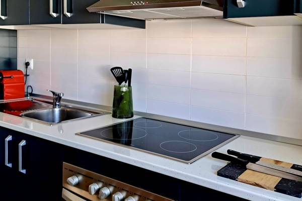 Die offene Küche ist komplett ausgestattet und verbindet elegantes Design mit praktischem Komfort. Es gibt ein Cerankochfeld, einen Backofen, eine Mikrowelle, einen Kühlschrank mit Gefrierfach, einen Geschirrspüler, einen Wasserkocher und eine Nespresso-Maschine. Alles, was Sie brauchen, um ein frisches Frühstück oder eine mediterrane Mahlzeit zuzubereiten.