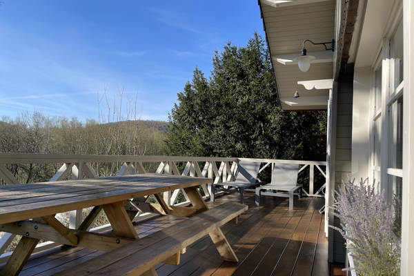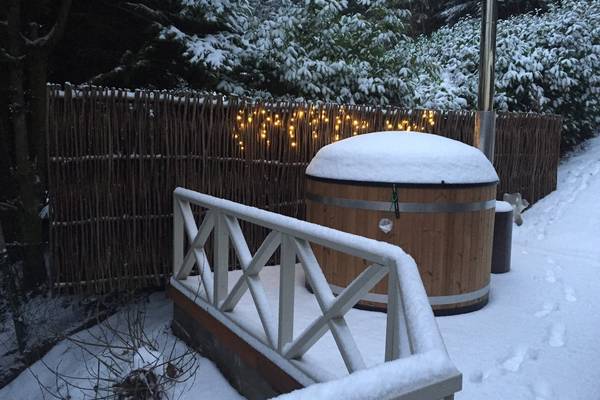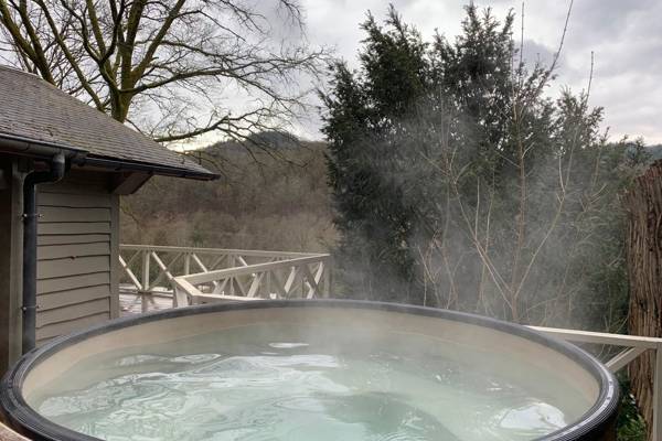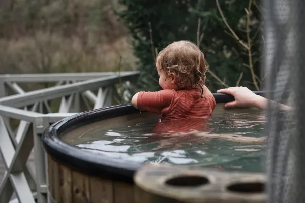 Nach einem Tag im Freien lockt Wellness. Die Infrarotsauna, die für drei Personen geeignet ist, wärmt die Muskeln nach einem ausgiebigen Spaziergang. Draußen wartet der holzbefeuerte Whirlpool: immer mit frischem Wasser gefüllt und groß genug für sechs Personen. Während das Feuer unter dem Ofen knistert, sinkt man langsam in das warme Wasser und beobachtet den Sternenhimmel über dem Tal.