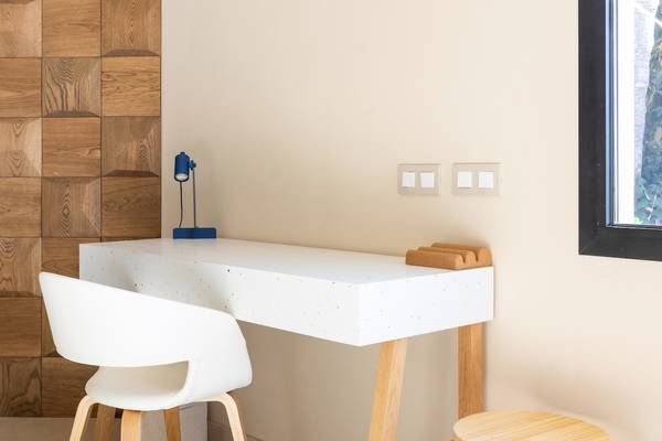Die Villa ist so eingerichtet, dass Sie sowohl entspannen als auch arbeiten können. Es gibt zwei elegante Schreibtische mit Aussicht, ideal für diejenigen, die in einer inspirierenden Umgebung arbeiten möchten.