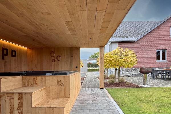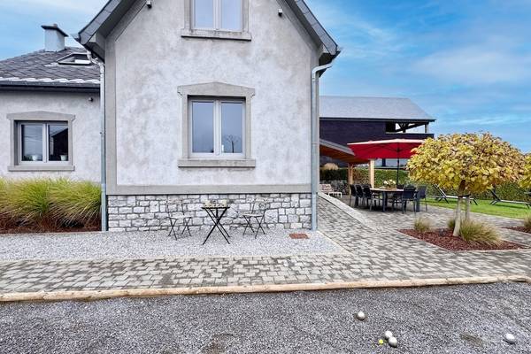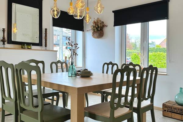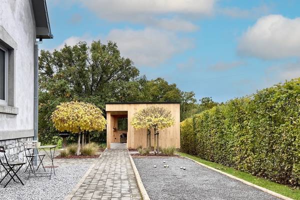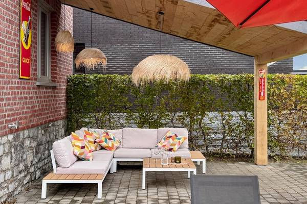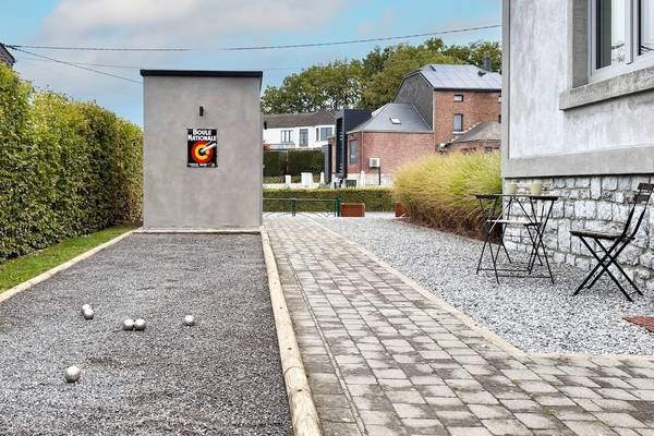 À l'extérieur, vous bénéficiez d'un beau jardin clos avec des haies vertes et des clôtures ornementales qui assurent à la fois l'intimité et la sécurité. La terrasse dispose d'un joli coin salon et d'une grande table à manger pour 8 personnes, idéale pour dîner ensemble à la belle étoile. Pendant les mois d'été (de mi-avril à fin octobre), des meubles d'extérieur sont disponibles et le barbecue Barbecook est à votre disposition. Pour ceux qui veulent se détendre activement, il y a un terrain de boules aménagé, et les chemins pavés invitent à toutes sortes de jeux en plein air.