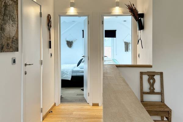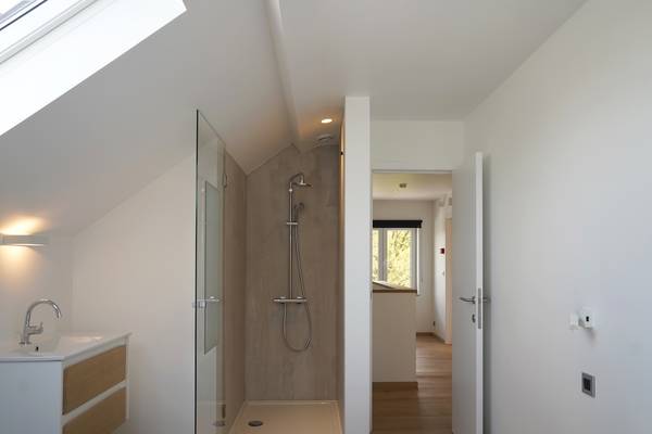 À cet étage, vous trouverez trois chambres spacieuses, chacune équipée d'un sommier double (160 cm). Chaque chambre dispose de sa propre salle de bains avec douche à l'italienne et lavabo, ce qui permet à chacun de se rafraîchir en toute tranquillité sans avoir à attendre. L'une des chambres a un plafond particulièrement haut et un bel éclairage, ce qui donne une impression d'espace et d'atmosphère.