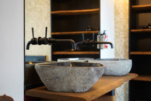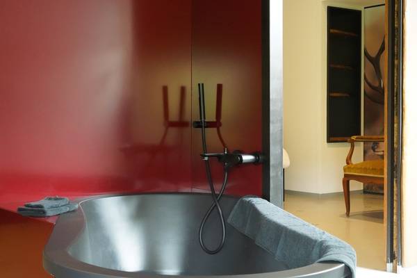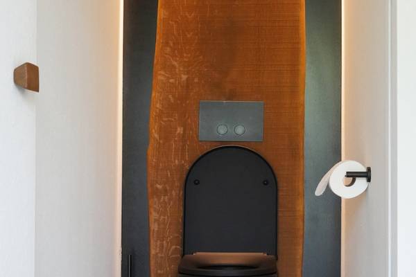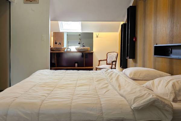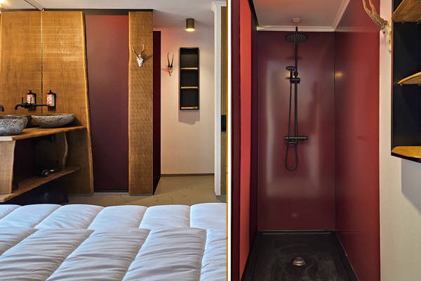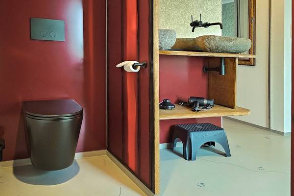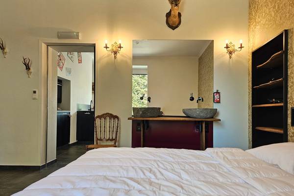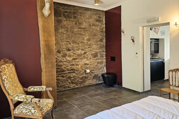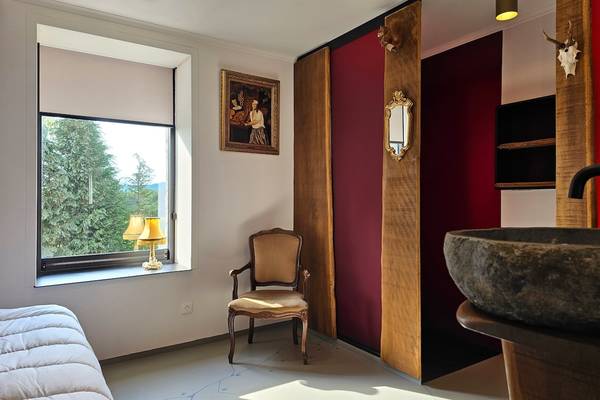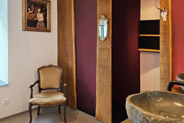 Au rez-de-chaussée se trouve également une chambre avec un lit double, un double lavabo, une douche à l'italienne et des toilettes, idéale pour les personnes à mobilité réduite.