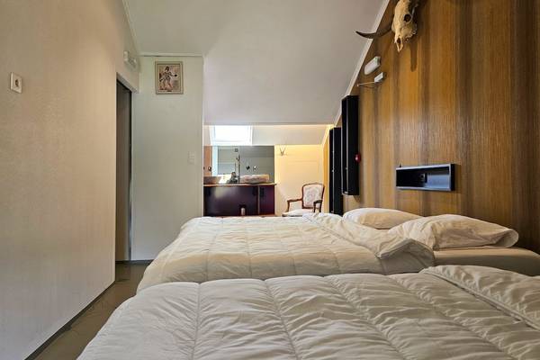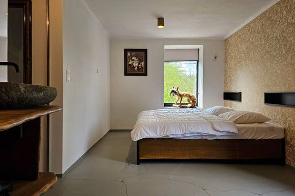 À l'étage se trouvent les autres chambres, chacune avec son propre charme et équipée de confortables lits à sommier (90x200 cm), qui peuvent être transformés en lits simples ou doubles. Waldolala compte au total sept chambres à coucher, chacune avec son atmosphère et sa disposition propres.
