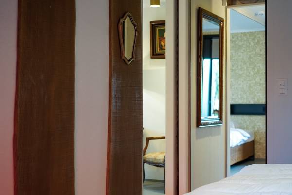 Trois d'entre elles sont des chambres doubles avec salle de bain privée, équipée d'une douche à l'italienne, d'un double lavabo et de toilettes. Il y a également deux chambres familiales spacieuses, aménagées comme des espaces de couchage ouverts sans plafond, chacune avec une salle de bains commune équipée d'une douche, d'un double lavabo et de toilettes. Il y a aussi une autre chambre familiale avec trois lits jumeaux et une salle de bains privée, et enfin une chambre avec baignoire, douche à l'italienne et double lavabo, un endroit charmant pour ceux qui aiment un peu plus de luxe.