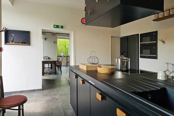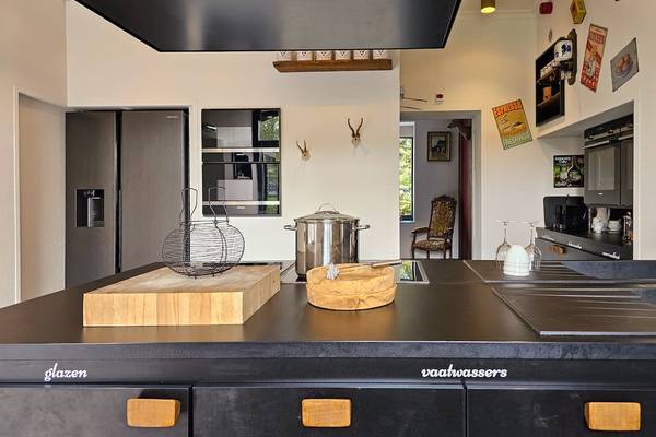 À l'intérieur, les vastes espaces de vie vous invitent à vous amuser ensemble. La grande cuisine industrielle est le cœur de la maison, avec un îlot de cuisson spacieux, deux plaques à induction, deux éviers et plus qu'assez d'appareils pour cuisiner pour une grande fête. Il y a deux lave-vaisselle, deux fours à micro-ondes, deux fours et une machine Nespresso ainsi qu'une machine à café filtre.