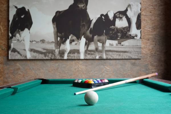 La propriété est très agréable. Pour les grands groupes qui souhaitent avoir de l'action même par mauvais temps, le bar avec billard, fléchettes et baby-foot est l'endroit idéal.