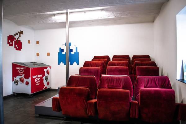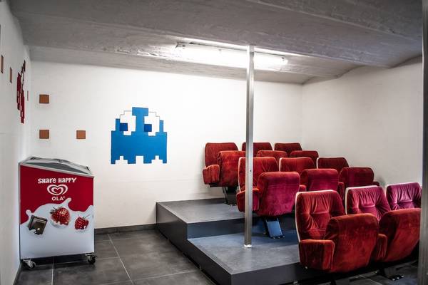 En bas, vous trouverez un véritable mini-cinéma avec des sièges de cinéma d'origine, un régal pour les enfants (et secrètement pour les adultes aussi).