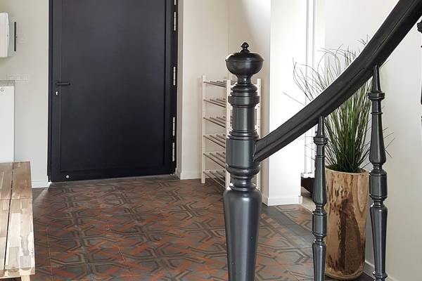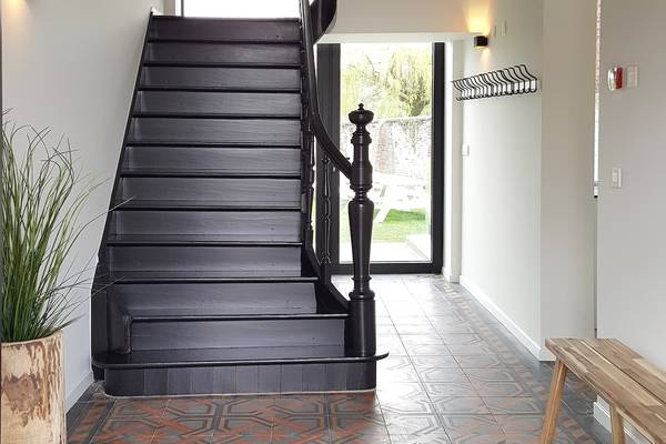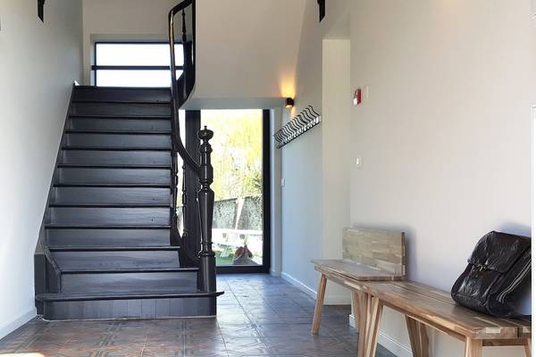 Derrière la façade robuste de la place du village se cache une maison de vacances pleine de surprises. L'entrée donne tout de suite le ton : un hall spacieux avec un carrelage authentique et un plafond magnifiquement restauré qui rappelle immédiatement la grandeur d'antan.