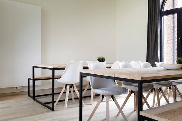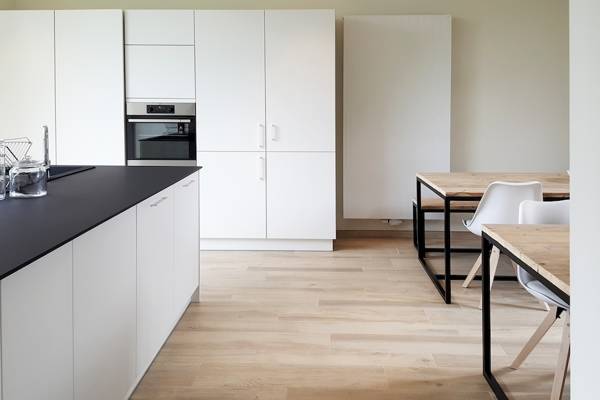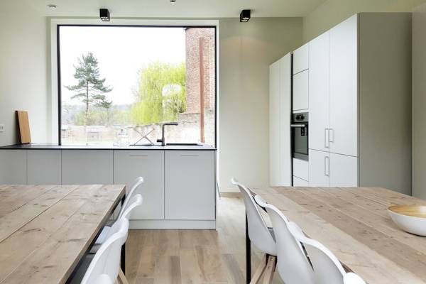 À côté, vous trouverez la salle à manger, suffisamment spacieuse pour accueillir une grande fête, avec deux longues tables où tout le monde se retrouve. La cuisine moderne se trouve du côté de la fenêtre et est équipée de tout le confort : plaque de cuisson en céramique, four à air chaud, micro-ondes, deux réfrigérateurs avec congélateur, double lave-vaisselle et une machine à café classique ainsi qu'une machine Nespresso. Idéal pour cuisiner et manger ensemble.