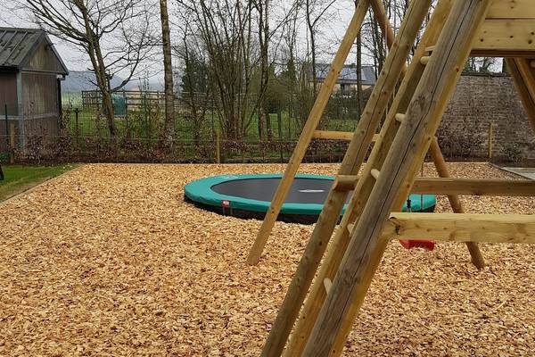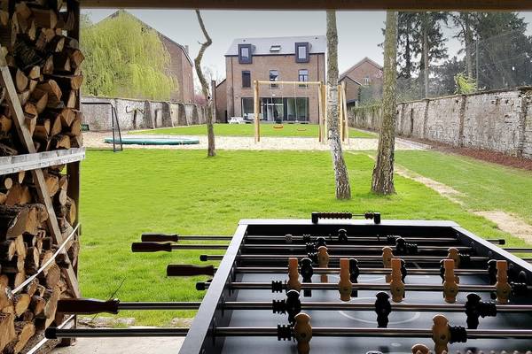 Le jardin clos est spacieux et ludique, permettant aux enfants de s'ébattre librement pendant que le reste de la famille se détend. Vous y trouverez un trampoline, des buts de football, une aire de jeux couverte avec une table de ping-pong et une terrasse avec barbecue et mobilier de jardin.