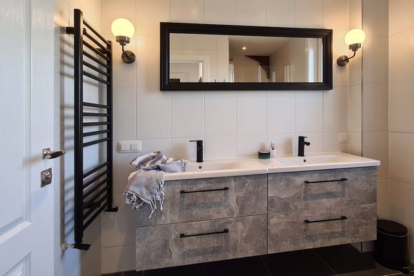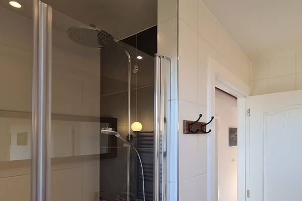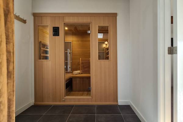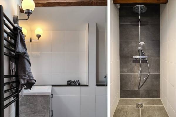 Les salles de bains sont modernes et disposent de douches à l'italienne avec pommeau de douche à effet pluie. Un sauna infrarouge est installé dans le couloir de l'étage. C'est un endroit merveilleux pour se détendre après une journée de randonnée ou de vélo. La chaleur infrarouge pénètre profondément dans les muscles et procure une pure relaxation.