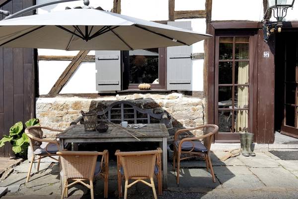 Ancienne ferme magnifiquement décorée de façon authentique. Jardin/terrasse à l'avant avec bain à remous, mais le temps ne nous a pas permis d'essayer le bain à remous. Tout est fourni dans la maison. Petit salon confortable avec poêle à bois, belle cuisine également avec poêle à bois et chambres spacieuses. Belle vue à l'arrière par les fenêtres. De belles promenades possibles depuis la maison et de nombreux restaurants à proximité (Heyd, Wéris, Durbuy). Nous nous sommes bien amusés.