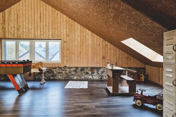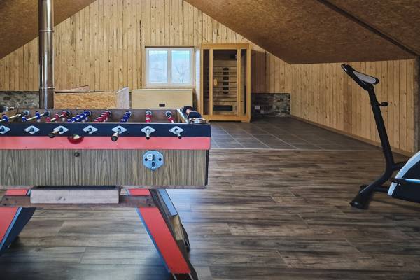 Le deuxième étage est un paradis pour les jeunes et les moins jeunes. Dans le grenier, vous trouverez une grande salle de jeux avec des jouets, un baby-foot et divers appareils de fitness. Après une journée active, vous pourrez vous détendre dans le sauna infrarouge, idéal pour récupérer vos muscles après une randonnée, une balade à vélo ou une journée de kayak sur l'Ourthe.