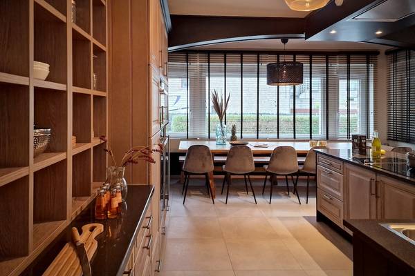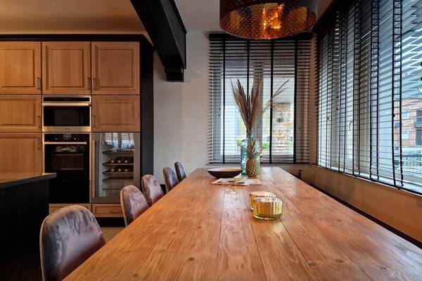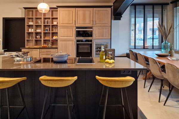 L'espace de vie est ouvert et lumineux, avec de grandes fenêtres qui attirent la nature. Au cœur de la maison se trouve la cuisine, entièrement équipée d'appareils modernes : un réfrigérateur-congélateur, un four, un four à micro-ondes combiné, une plaque de cuisson en céramique, une machine Senseo, un grill, une armoire chauffante, un lave-vaisselle et même un refroidisseur de vin intégré. Tout ce qu'il faut pour cuisiner et dîner ensemble.