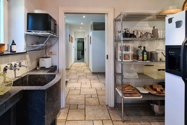 La cuisine ouverte dispose d'un îlot de cuisson entièrement équipé et vous invite à cuisiner ensemble. Juste à côté de la cuisine se trouve une buanderie avec un réfrigérateur américain et un espace de rangement supplémentaire. La cuisine est également équipée d'un lave-vaisselle, d'une plaque de cuisson de 90 cm de large, d'un four, d'une bouilloire, d'une machine à café Nespresso et d'une machine à café traditionnelle.
