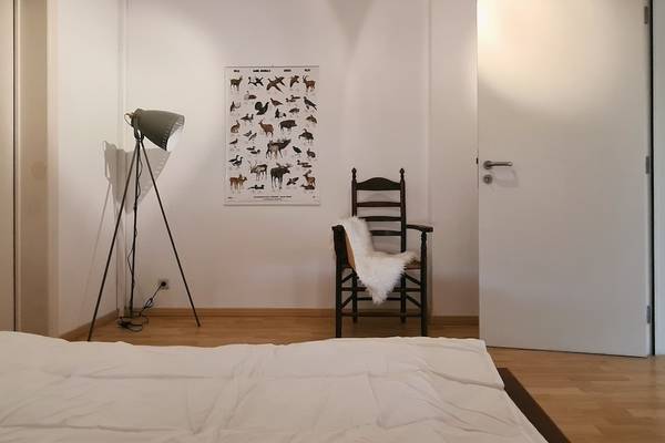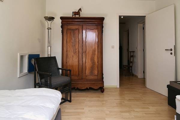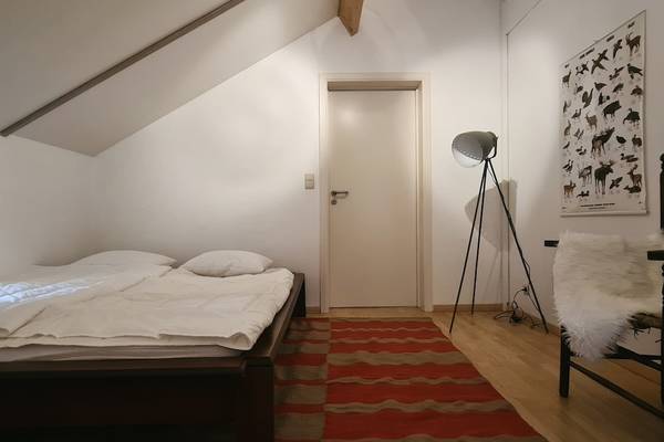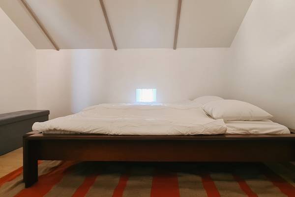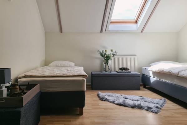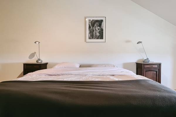 Deux chambres spacieuses avec des lits doubles de 160 cm (chacun avec deux couettes simples) partagent une salle de bains avec douche à l'italienne, lavabo et toilettes. Il y a également une chambre d'enfant meublée comme une chambre d'amis, avec deux lits simples de 80 cm à sommier à ressorts.