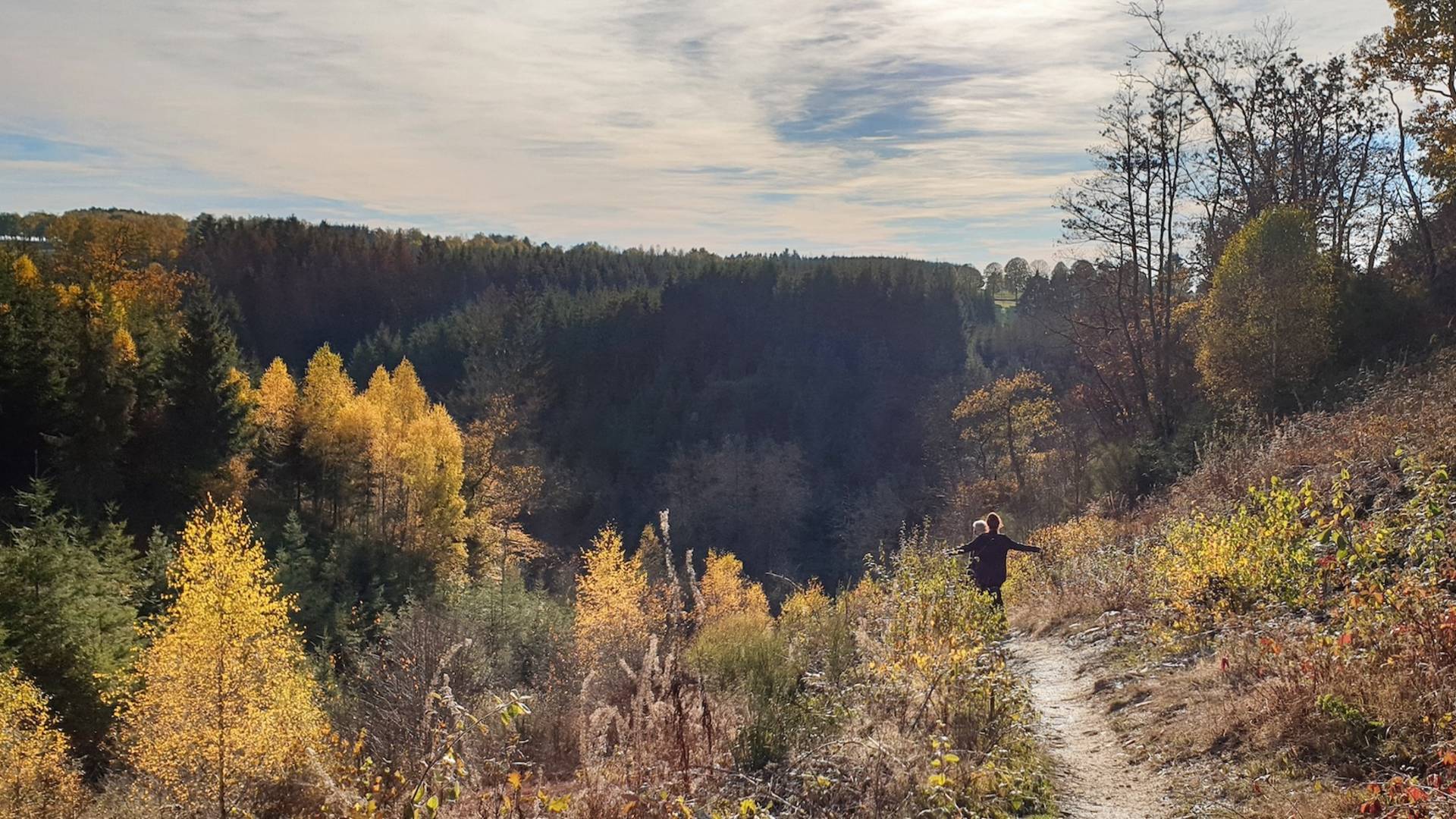 Na het eerste, rustige deel verandert de wandeling langzaam van karakter. De paden worden uitdagender en brengen je omhoog, richting de mooiste uitzichtpunten rondom Achouffe.