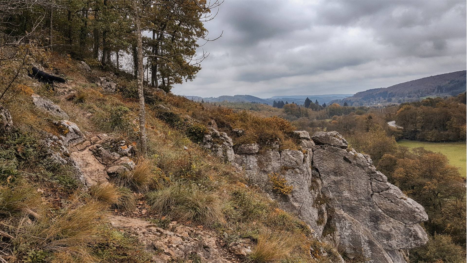De wandeling begint direct met het nodige karakter: een flink stuk klauterwerk daagt je uit om de hoogte op te zoeken. Eenmaal boven word je echter rijkelijk beloond. Het panoramische uitzicht over de kronkelende rivier en de groene vallei is werkelijk adembenemend en biedt een uniek perspectief op het Ardense landschap.