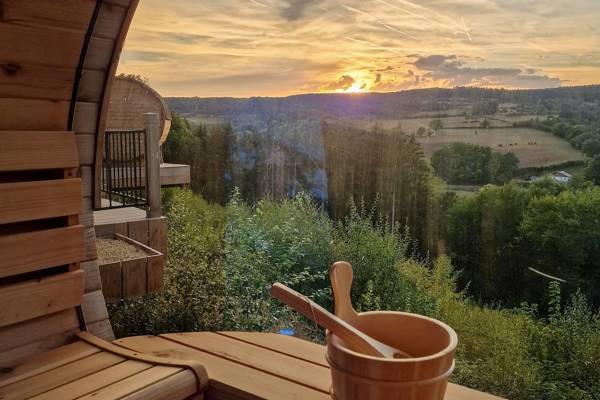 ’s Avonds is het puur genieten op het terras, met zicht op de steeds veranderende natuur en de warmte van sauna of hottub. Een verblijf om nooit te vergeten.
