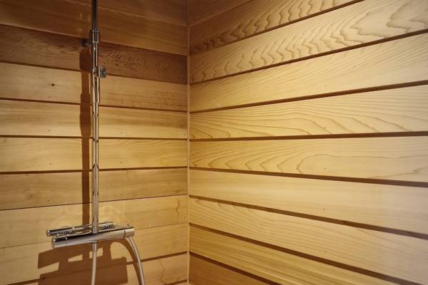 De douche met die houten afwerking is echt een droom!! Die geur die dat geeft, zalig.