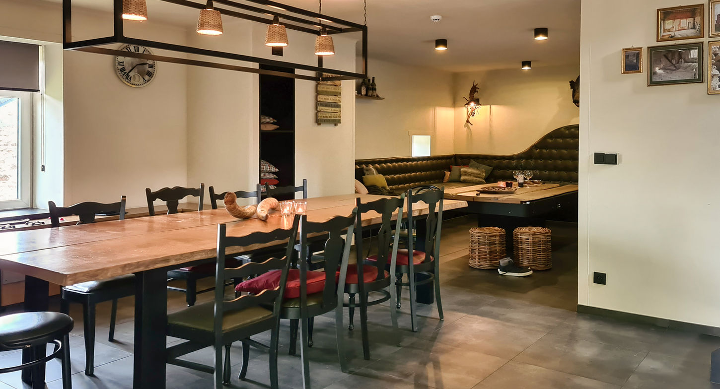 Volledig gerenoveerd met riante binnenruimte's, sauna, biljart en overdekt terras.
