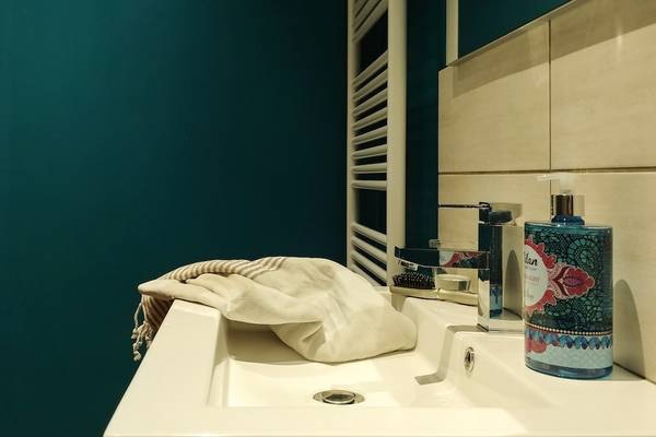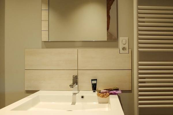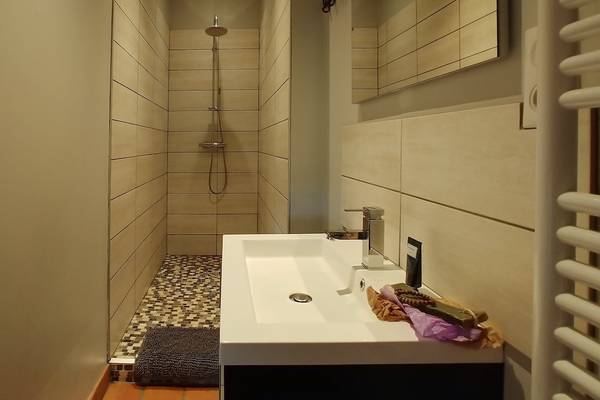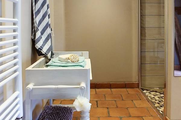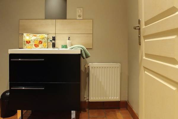 De badkamerindeling op de eerste verdieping is praktisch en comfortabel: één slaapkamer heeft een eigen badkamer met wastafel en douche, terwijl een andere badkamer gedeeld wordt door de familiekamer en een van de tweepersoonskamers. Er zijn bovendien twee aparte toiletten beschikbaar, zodat iedereen in alle rust kan vertrekken voor een nieuwe dag vol avontuur.